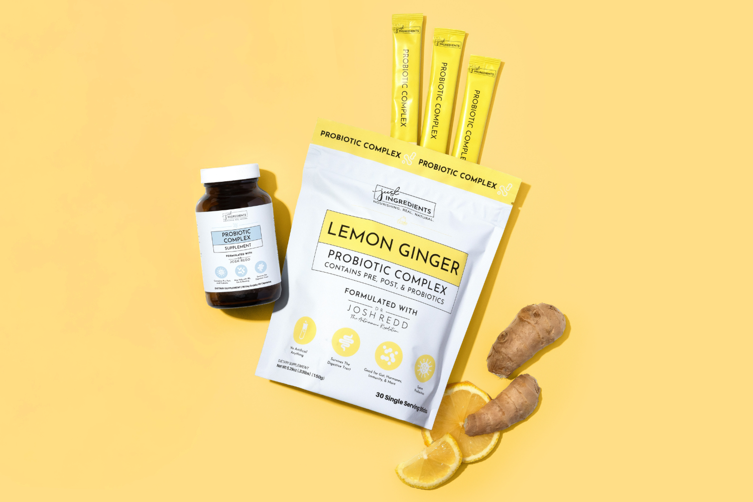 Together, the Probiotic Complex promotes a healthy microbiome, while the Probiotic Complex Capsules defend the gut and reduce inflammation, offering comprehensive support for digestive health.